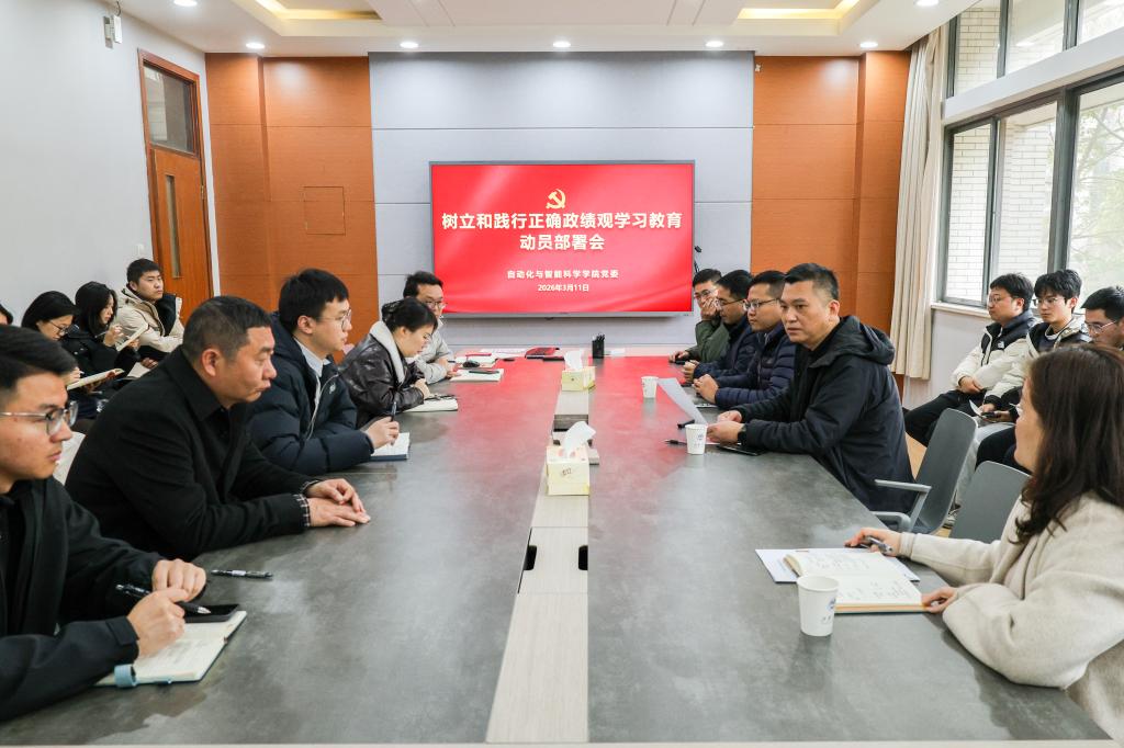 3月11日下午,自动化与智能科学学院党委召开树立和践行正确政绩观学习教育动员部署会。学院领导班子、党委委员及各党支部书记参加会议。院党委书记张华作动员讲话并讲党课。