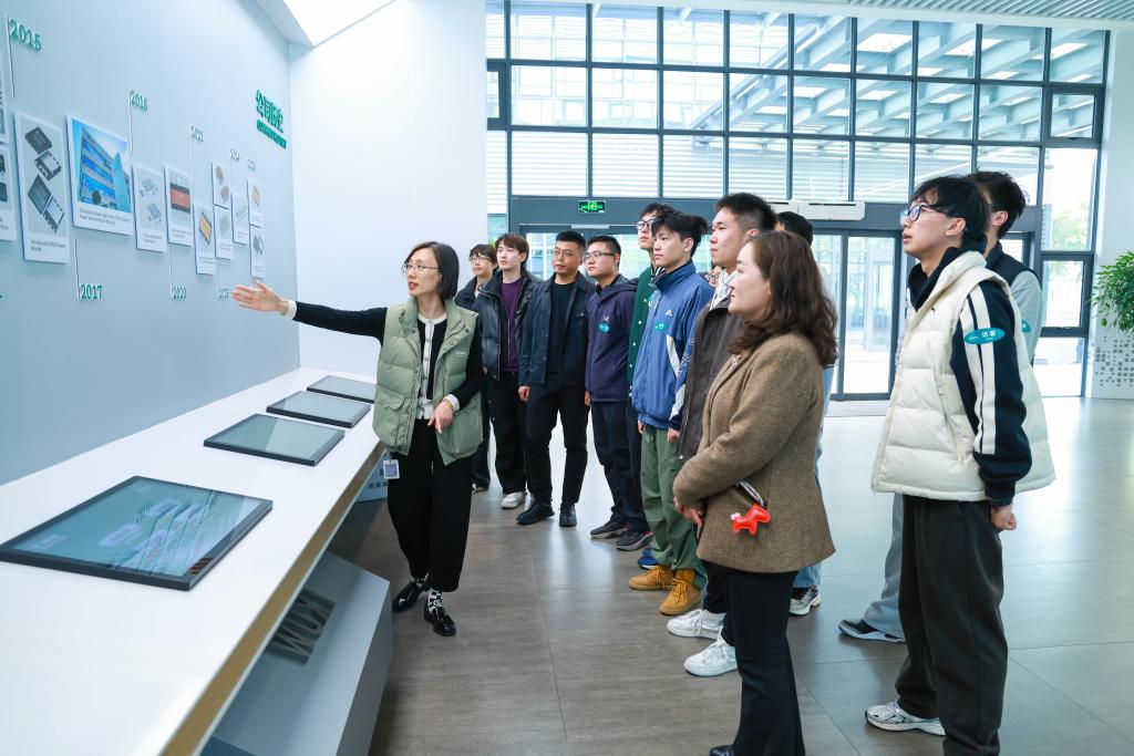 师生团队在企业资深工程师的带领下,参观了公司现代化生产区域,让大家近距离观察了高精度、全自动的先进生产设备及半导体封装制造工艺流程。参观过程中,工程师详细介绍了分立器件的后道封装工艺、质量管控流程及“零缺陷”核心质量理念。从精密工序到严苛的质量检测,同学们对智能制造背后的严谨性和高效性有了深刻体会。这次沉浸式的参观,使学子将课堂知识与生产实际深度结合,为进一步了解专业技术的应用场景提供了宝贵实践机会。