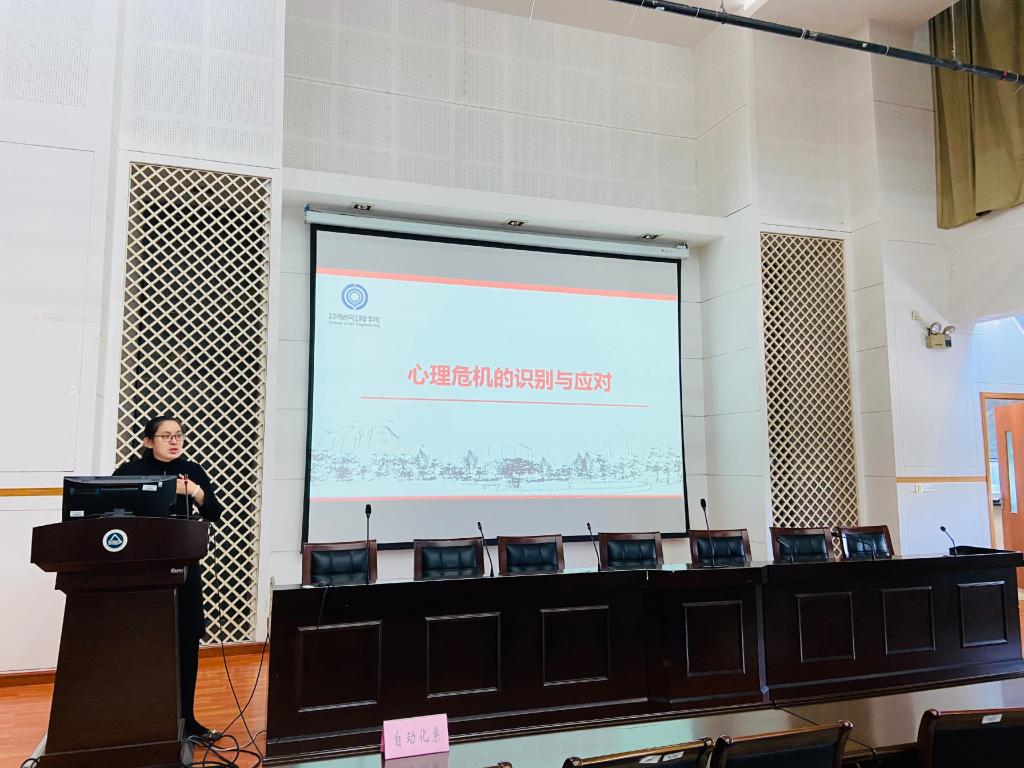 会议伊始,孔丽丹由最近几起自杀事件切入话题,围绕自杀行为及其影响,提醒各位老师要正确认识和了解当代大学生的心理健康问题,重视心理育人工作,在掌握必备的心理知识基础上,协同辅导员队伍共同做好大学生心理健康教育工作。随后,国家二级心理咨询师、辅导员吴迪就关注大学生心理健康状态,提升辨别和应对大学生常见心理问题的能力开展了题为《大学生心理危机的识别和应对》的讲座。
